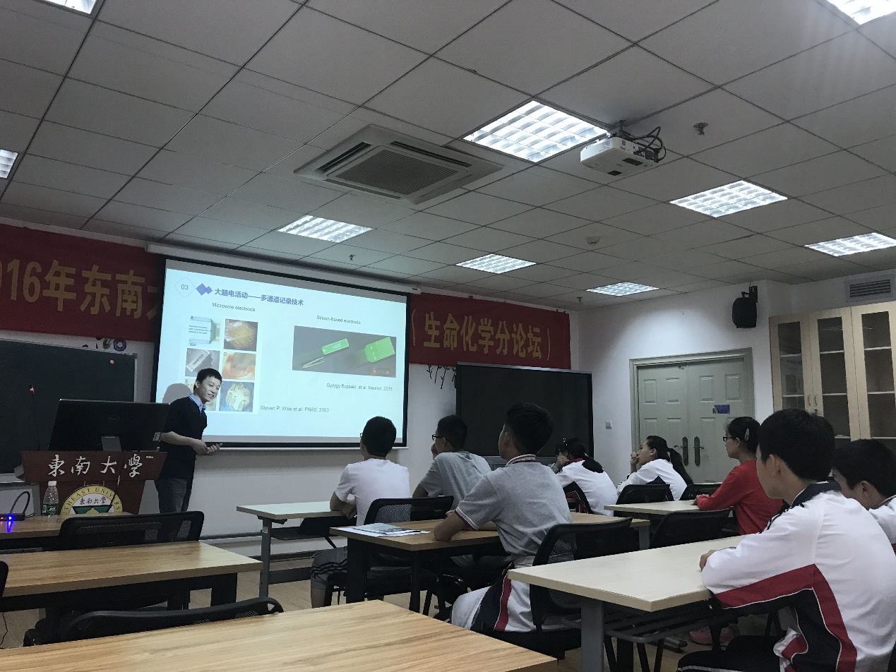 参观人员首先在会议室听取了由陆巍教授实验室博士生准备的科普小讲座。讲座主要介绍了大脑的基础知识、主要的结构、电生理的基本概念以及针对大脑的研究方法与技术手段。在讲座上,同学们踊跃发言,积极提问,对科学研究充满了好奇心,接着参观人员分组参观实验室。
